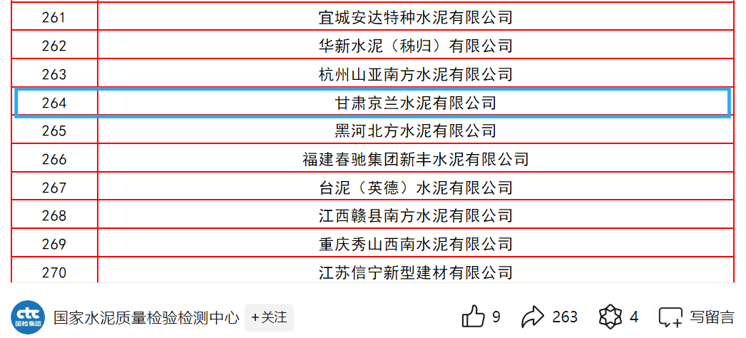 甘肃京兰水泥高度重视各项产品试验检验及对比验证,并将其作为质量监控的重要手段。公司将根据大对比结果,不断提高实验室管理水平和检验水平。